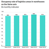 Occupancy rate of logistics areas in warehouses on the Seine axis*: 91%