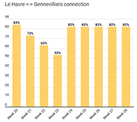 - Le Havre <-> Gennevilliers connection: 82%