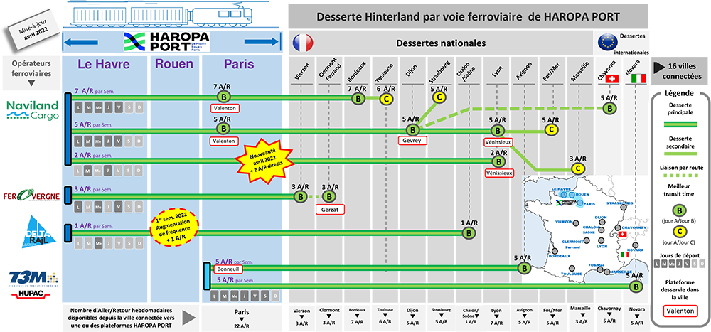 4 operators provide these rail links: Ferovergne, Naviland cargo, T3M, F.F.A. Marfret and Delta Rail.