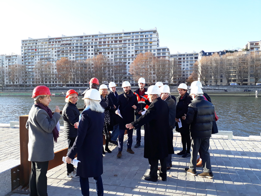HAROPA - Ports de Paris invited the local residents' associations on 30 November 2018 for a presentation during a guided visit of the first developments carried out at this stage: in particular, the access ramp from the Mirabeau Bridge, the promenades at the bottom of the quay and alongside the quay, the new Point P buildings, the Cauchy passage and plot and the traffic lanes.